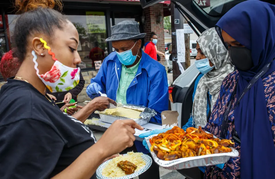 Somali American community members serve a home-made lunch in Minneapolis, Minnesota. U.S. President Donald Trump has called the Somali immigrants in Minnesota “garbage.”